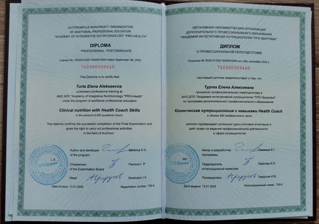нутрициолог и коуч по рациональному питанию